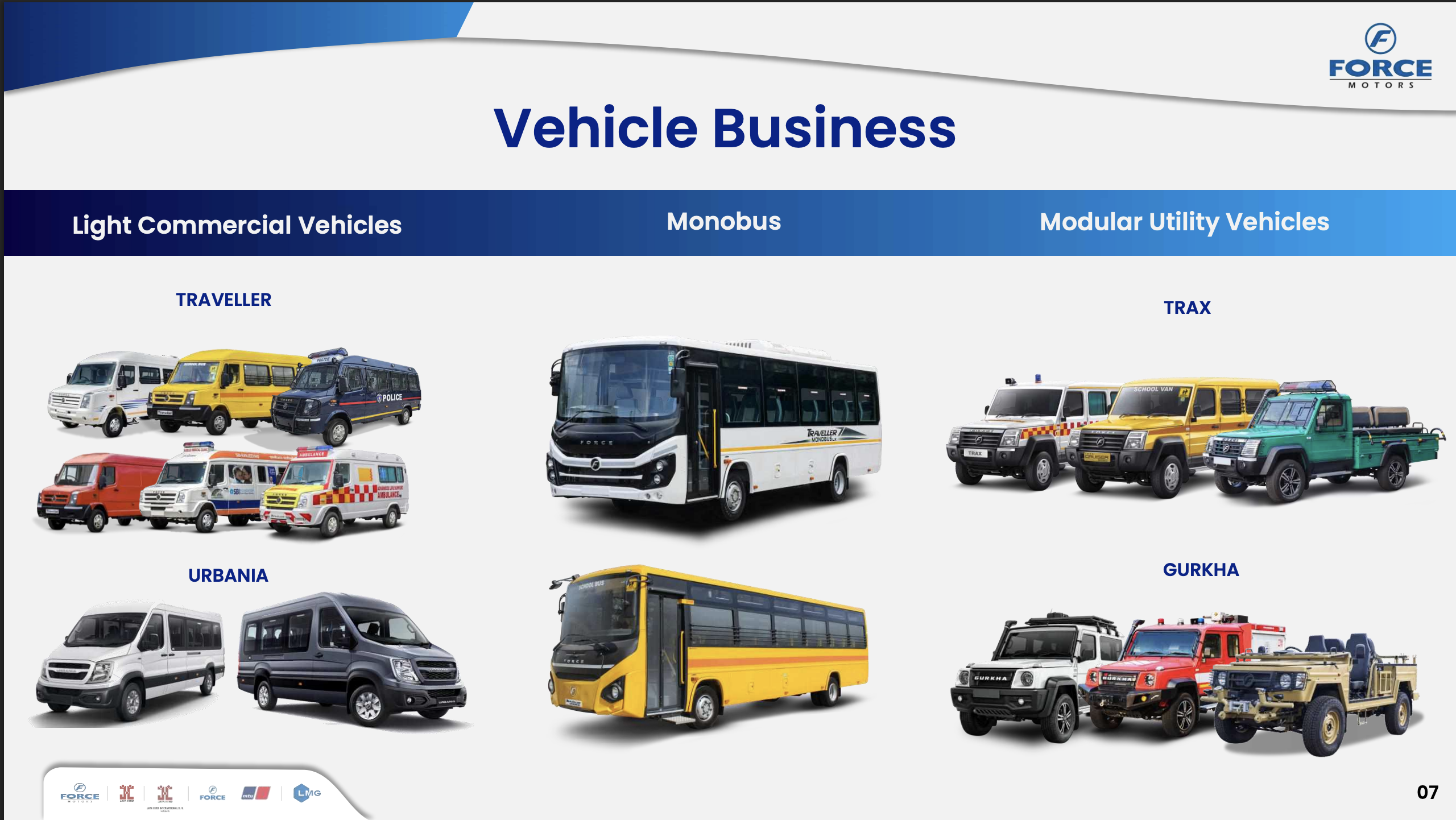 The Vehicle Business covers Light Commercial Vehicles (Traveller — the van your kid takes to school), Monobus (31 and 44-seater fully factory-built bus — India’s first), and Multi-Utility Vehicles (Gurkha for off-roading, Trax for everything else). Add tractors to that — wait, no. They killed tractors in March 2024. Smart move, actually.