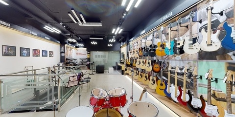 Yamaha: keyboards, pianos, drums, guitars, brass, woodwinds, violins, cello, vibraphones, and audio gear like headphones, studio monitors, portable PA systems, digital mixers.