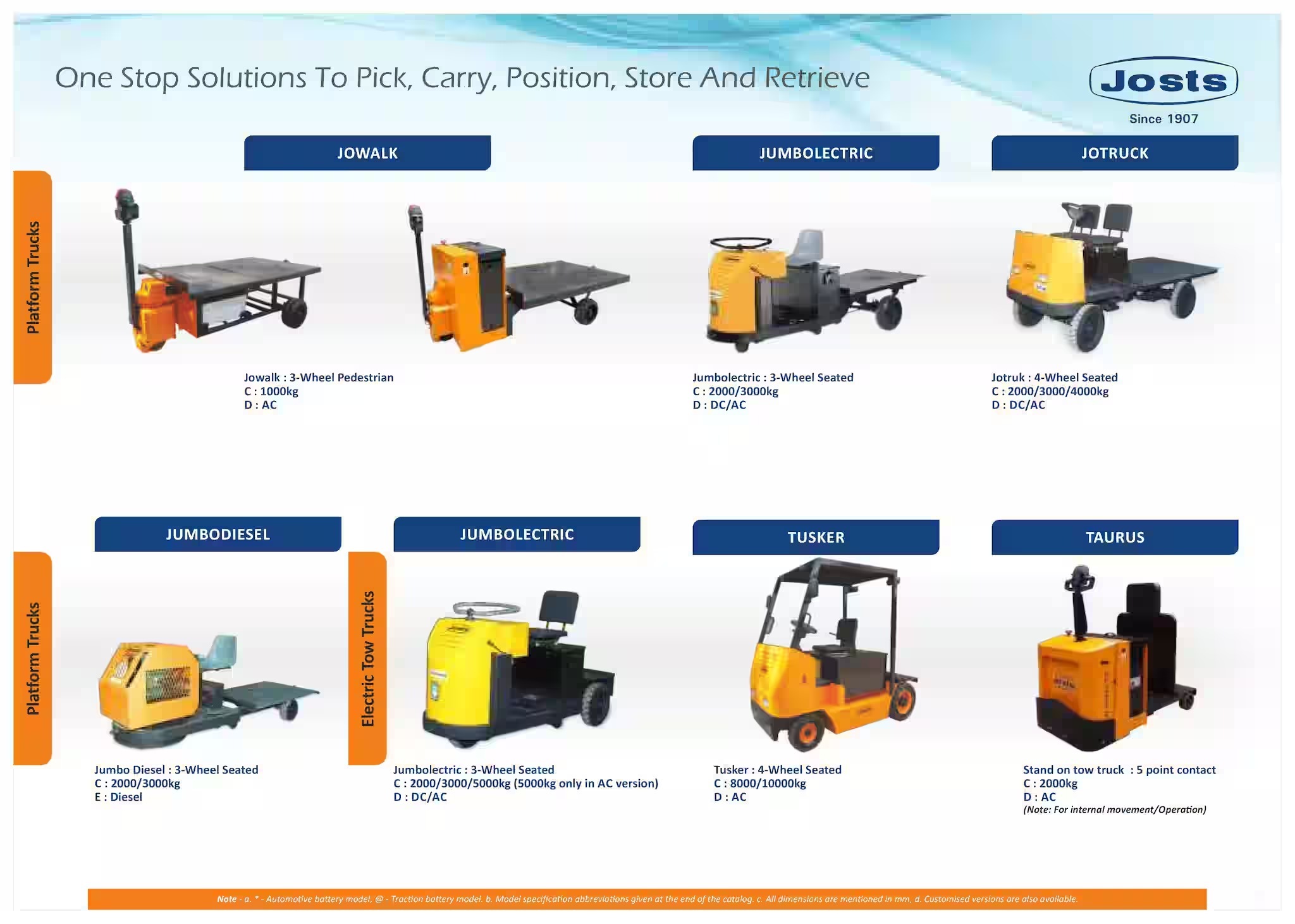 Forklifts, stackers, conveyors, intra-logistics solutions. If something needs to be lifted, stacked, or moved inside a factory, Josts wants a cut. New products include electric forklifts (above 5 tonnes) and vertical reciprocating conveyors—fancy names for “don’t break your back, let the machine do it.”