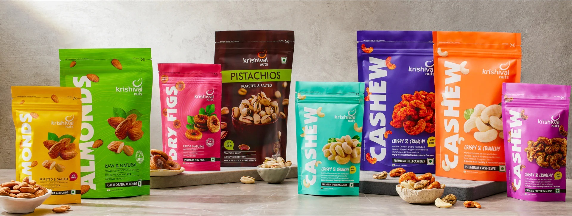But wait, there’s more: They do this for cashews, pistachios, almonds, figs, and assorted combos under the brand Krishival Nuts, retailed across 64 Tier II & III cities.