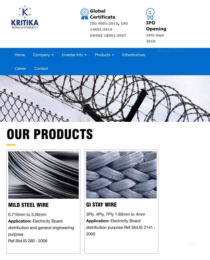This is not a fly-by-night operation. It sells steel wires, galvanized wires, ACSR core wires, and other products that literally hold up India’s power infrastructure. These are not optional items. If electricity flows, Kritika probably supplied something along the way.