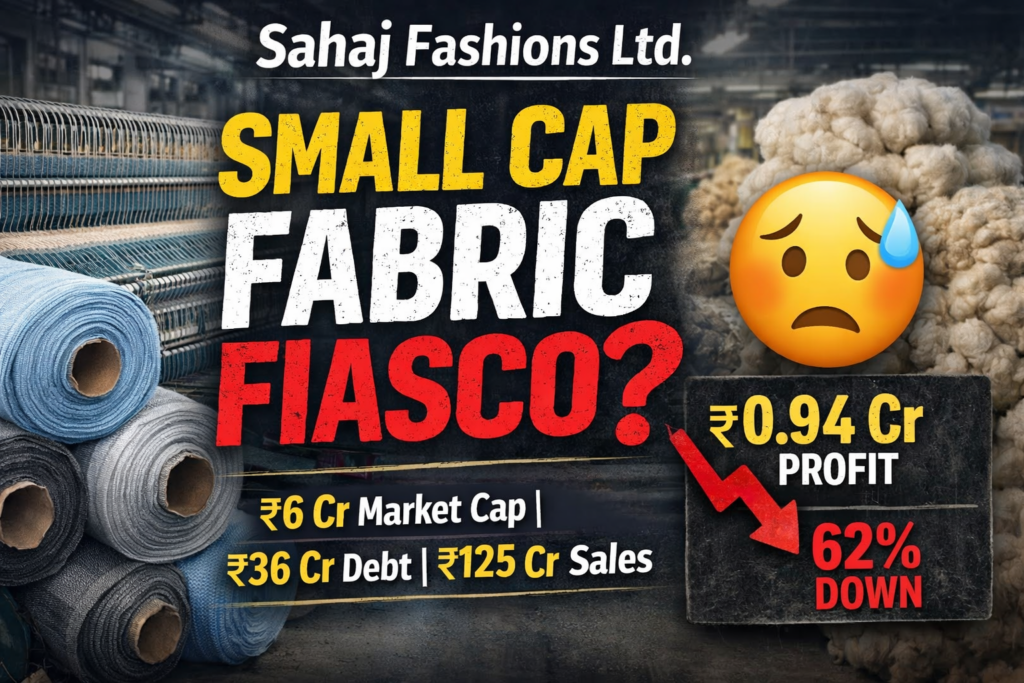 Sahaj Fashions Ltd is that stock which looks like a value investor’s wet dream on Excel and a patience test in real life. Market cap of ₹6.13 Cr, stock price hovering near lifetime low at ₹4.65, trading at 0.18x book value, and a P/E of 6.5 in an industry where peers flirt with 20–30x. Sounds cheap? Yes. Sounds easy? Absolutely not.