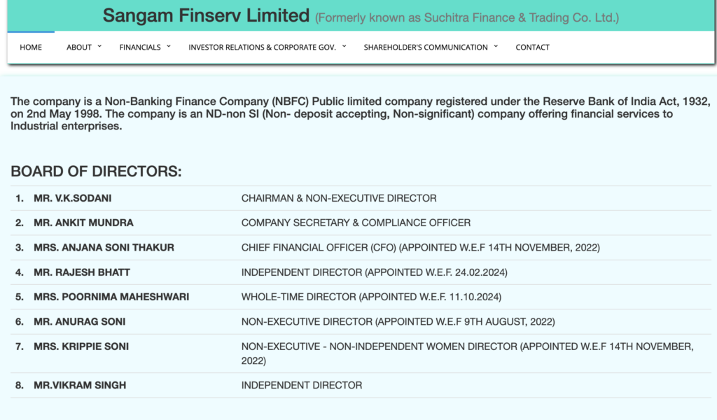 Sangam Finserv (formerly Suchitra Finance & Trading) is a non-deposit-taking NBFC incorporated in 1981 — which means it has survived multiple economic cycles, liberalisation, scams, reforms, and SEBI mood swings. Longevity is impressive, but longevity alone doesn’t make returns.